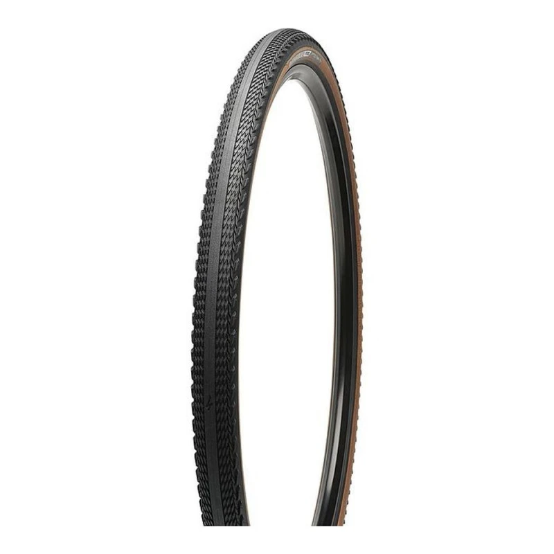 Un pneu de Gravel avec une bande de roulement sur route et crampons sur les côtes pour une bonne accroche sur le chemin